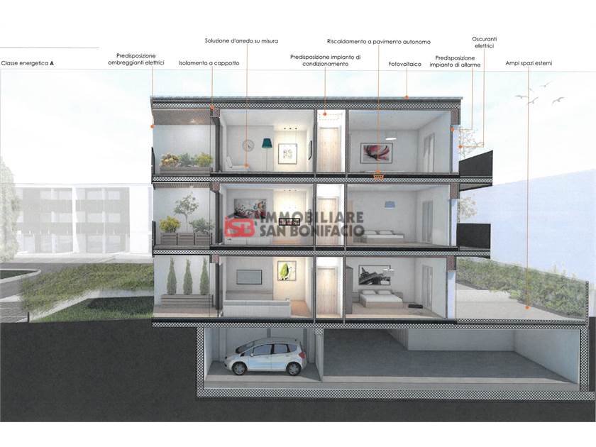 Antifurto, Aria Condizionata, Ascensore, Bagno Handicap, Cancello Elettrico, Doppi Vetri, Impianto Fotovoltaico, Parco Condominiale, Passaggio Automobilistico, Passaggio Pedonale, Porta Blindata, Tapparelle Elettriche, Video Citofono, Zanzariere
