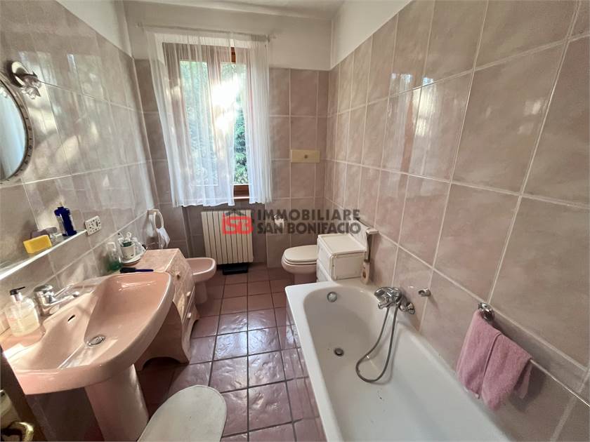 Composta da: soggiorno, cucina, tre camere da letto e due bagni, nell'interrato troviamo un locale taverna, una cantina, un bagno, una lavanderia e un garage per tre auto.
