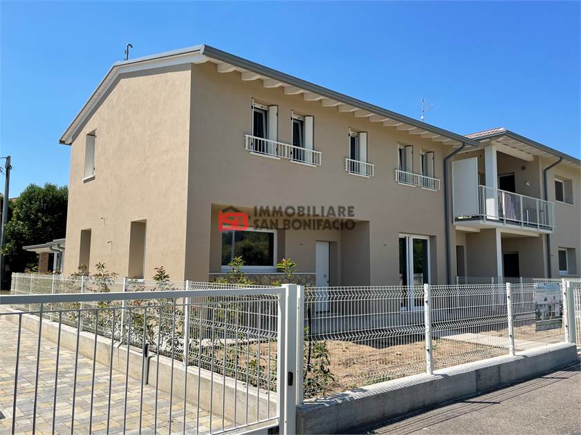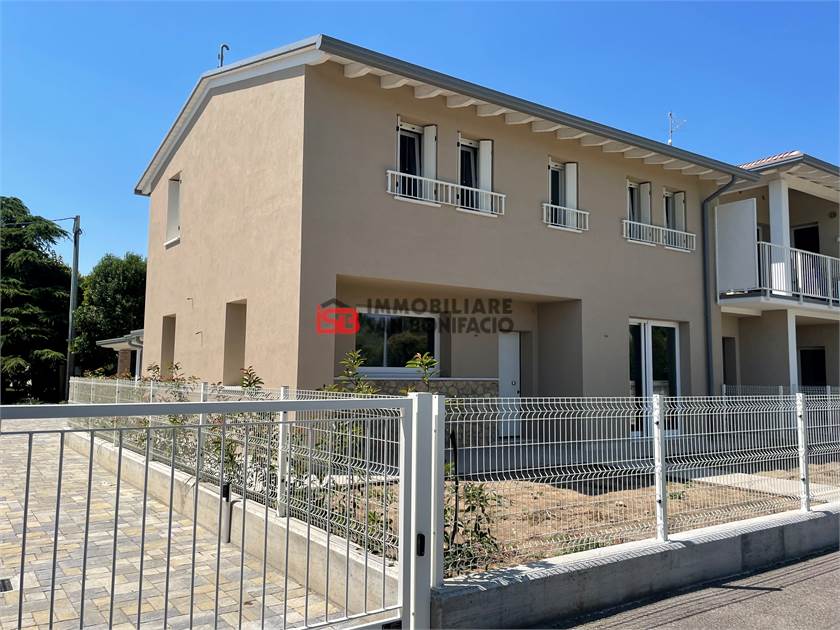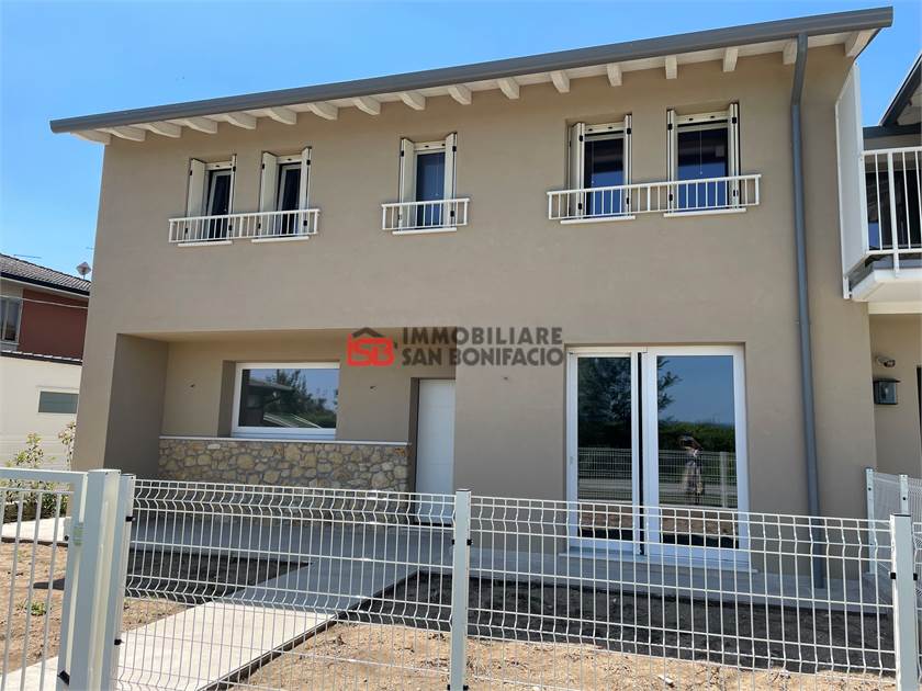 Nuova villetta a schiera d'angolo in posizione che garantisce privacy e tranquillità con ampio giardino di pertinenza composta da zona giorno molto ampia e bagno al piano terra, tre camere doppie, bagno e ripostiglio al piano primo. Garage al piano terra collegato direttamente alla zona giorno.